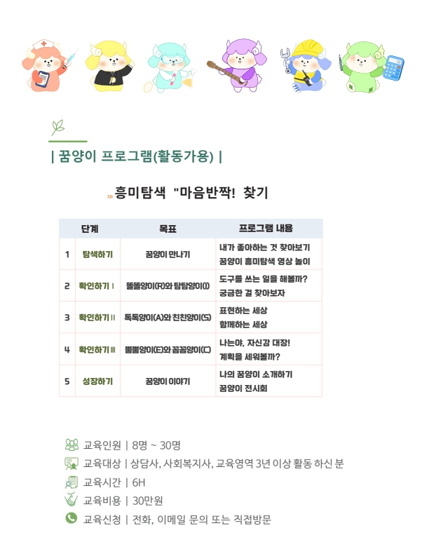 흥미탐색 영상, 체크지, 러닝북, 유형별 활동 스티커, 꿈양이 활용서